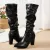 Vintage Knee High Pleated Boots for Women with Thick Heel